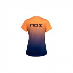 Lacamiseta Nox Propara mujer es un modelo en color naranja con efecto difuminado en color azul confeccionada entejido politeren un corte entallado que seajusta perfecto a la silueta.